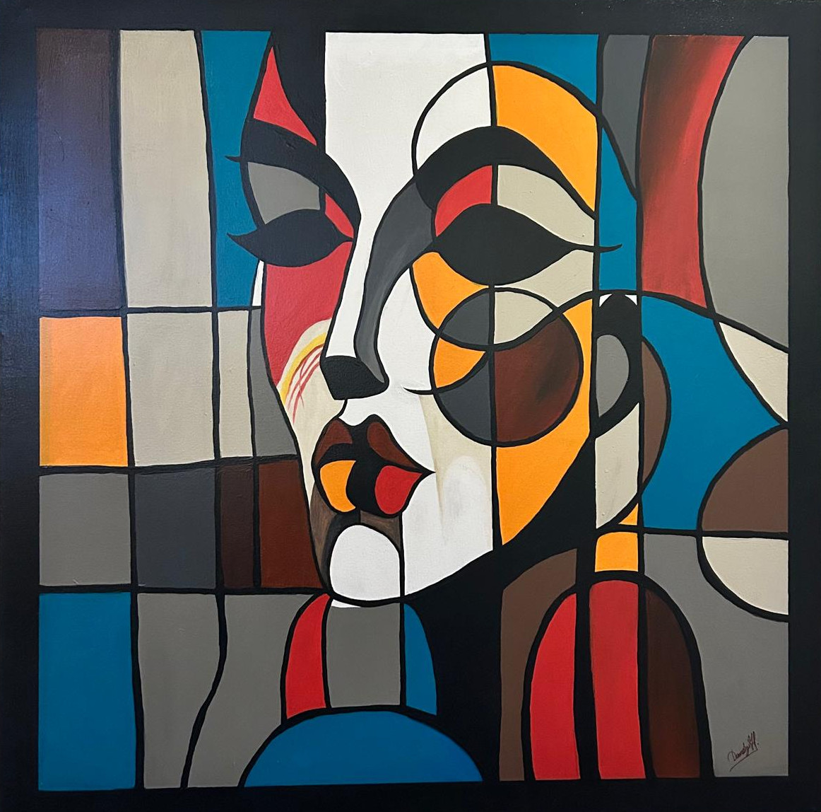 Esta obra propone una mirada sobre la identidad como un mosaico emocional. No se trata de una mujer dividida, sino compuesta: sus fragmentos no son quiebres, sino capas. Las líneas no la encierran, la estructuran.