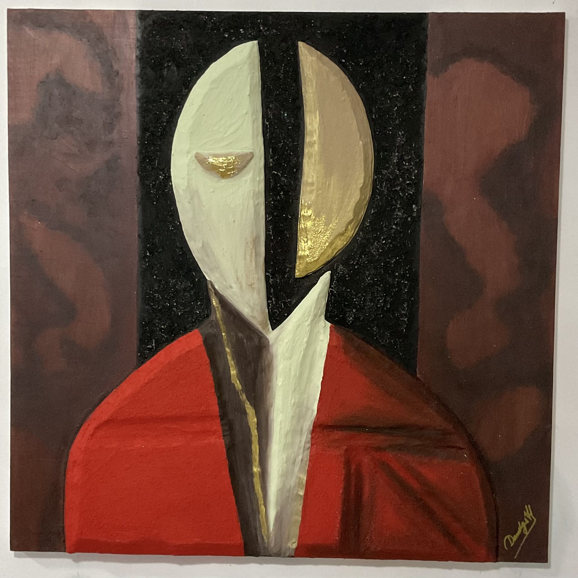 Una figura fragmentada revela más de lo que oculta. La que habita es un viaje interior: cuerpo, emoción y espíritu conviven en silencio. El color se convierte en ritual, y la geometría en refugio.