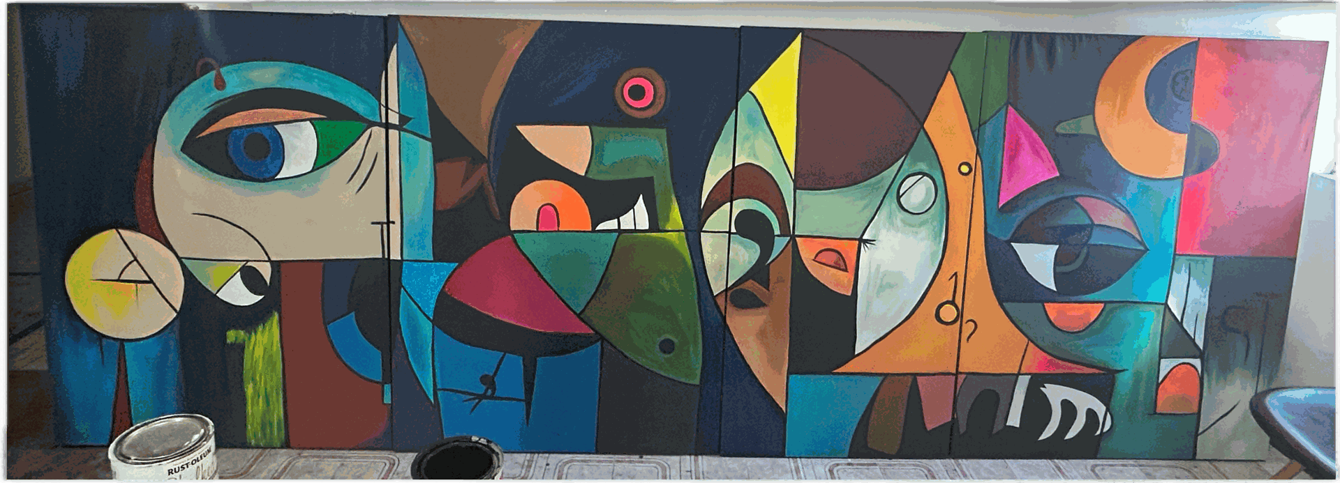 Inspirada en los lenguajes visuales del cubismo y los vitrales, Fragmentos de Ella celebra la multiplicidad interna que existe en todo ser humano. No es un retrato realista, pero sí profundamente verdadero.